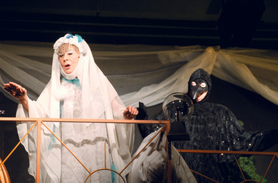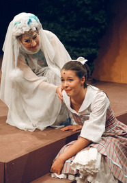 Holle anyónak földöntúli hatalma van. Irányítja az emberek életét, a tengerek vándorlásait, dunyhájából hó hull a földre, zenélő csodahárfájára ébred a földön fiú és lány között a szerelem. Susa, a kis mostohalány kútba ugrik, hogy eldobja szomorú életét, de a halál és élet között uralkodó Holle anyó megmenti, és ad még egy lehetoséget a földi boldogság megtalálására. A lány rászolgál a bizalomra, és jutalmul hatalmas ajándékot kap. A mostoha megirigyeli a lány eredményeit, és elkényeztetett lányát, Linát is a kútba dobja. Kikkel talákoznak odaát, mirol suttognak a halott lelkek fái, a boldog-szomorú kemencék és az elátkozott lelkek kórusa? A mesejátékban minderre választ kaphatunk. A klasszikus Grimm mese nyomán készült színdarab csodálatos és varázslatos világba repíti a gyerek és felnott nézőket egyaránt.